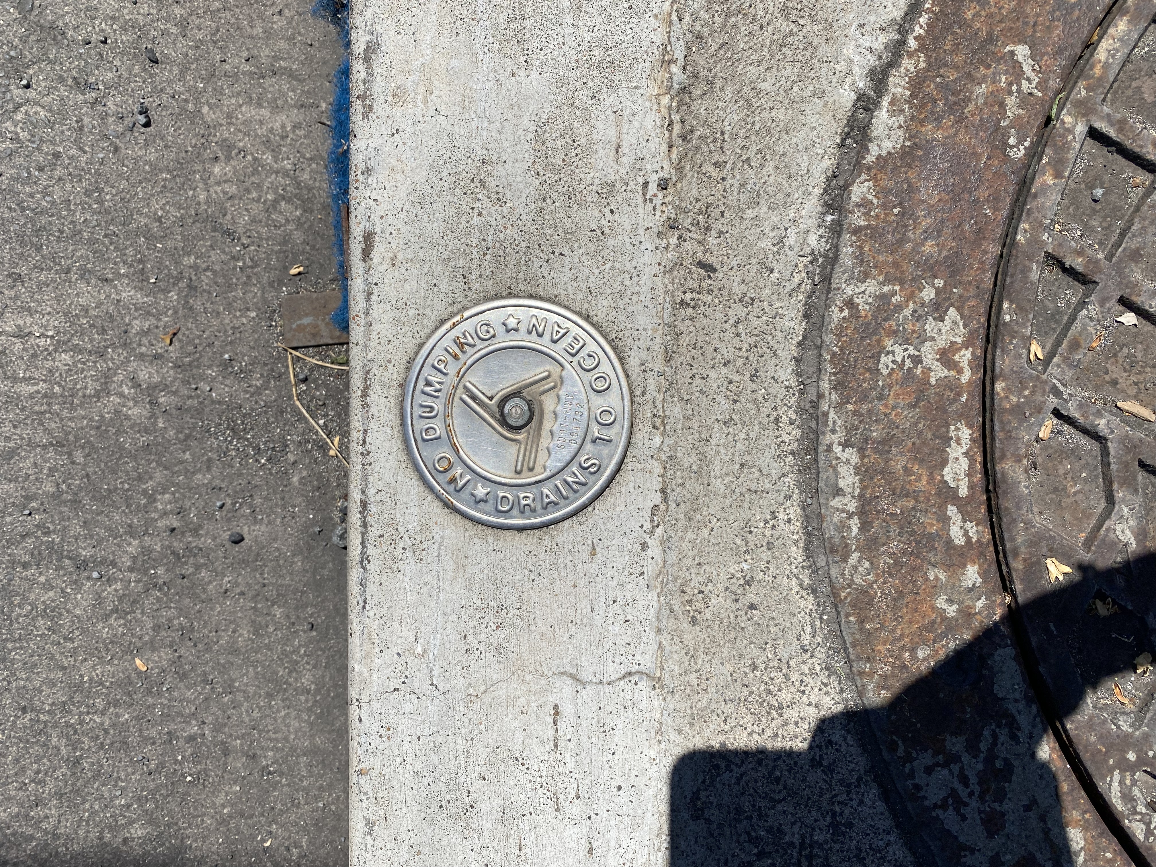 Does the phrase “No Dumping, Drains to Ocean” ring a bell? You might have seen the words etched on a small metal marker on the sidewalk in your neighborhood while on your daily walk, or even while running errands. These markers, called placards, are a small but mighty part of our storm drain system.